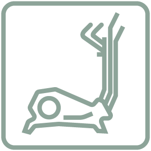 Široké protiskluzové platformy pro nohy poskytují bezpečnou oporu při tréninku. Plošiny jsou pevné, nikoli nastavitelné. Délka kroku, kterou lze dosáhnout, je 500 mm. Rozteč ližin: 100 mm.
