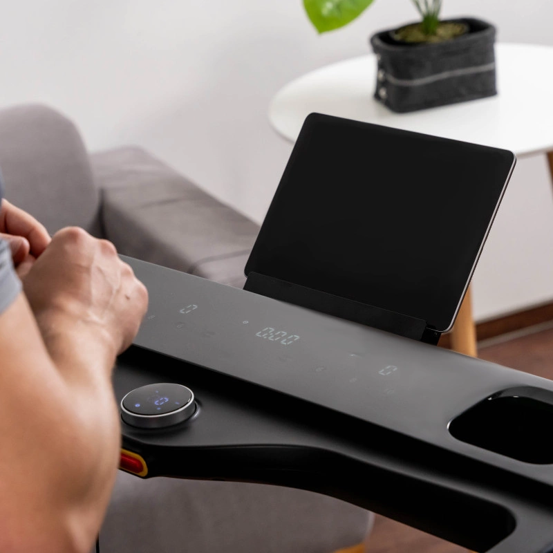 Velký držák na tablet usnadňuje zábavu nebo interaktivní běhy (tablet není součástí sady), a tichý bezkartáčový motor 2 KM pracuje efektivně a energeticky úsporně.