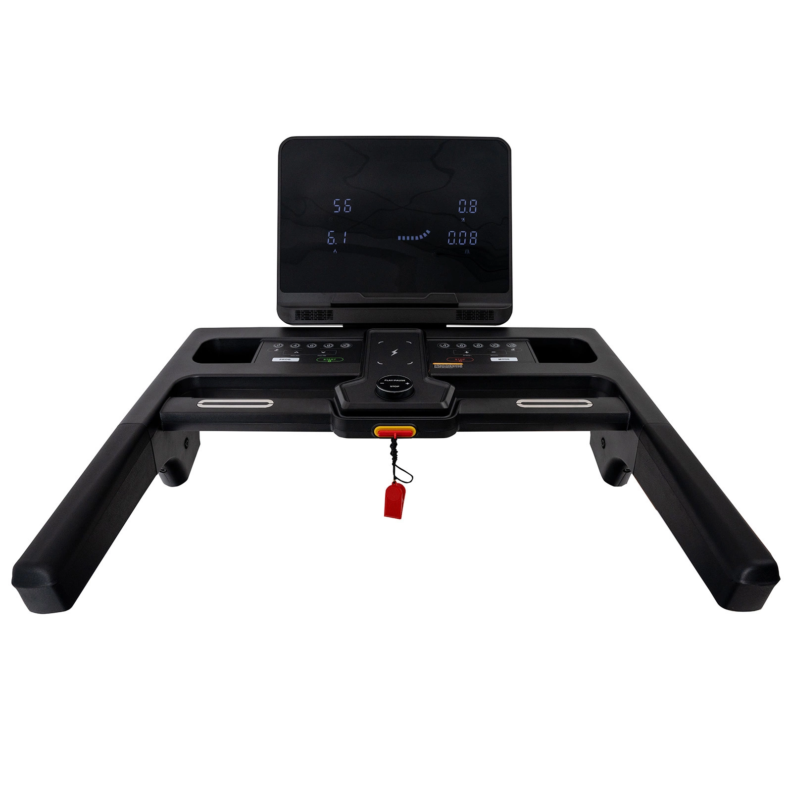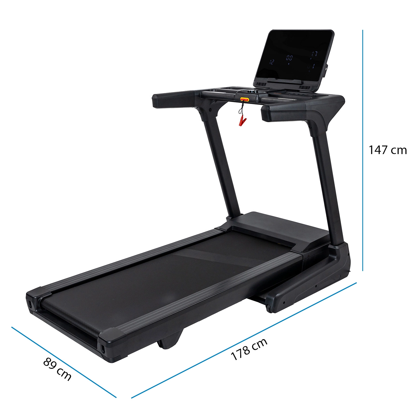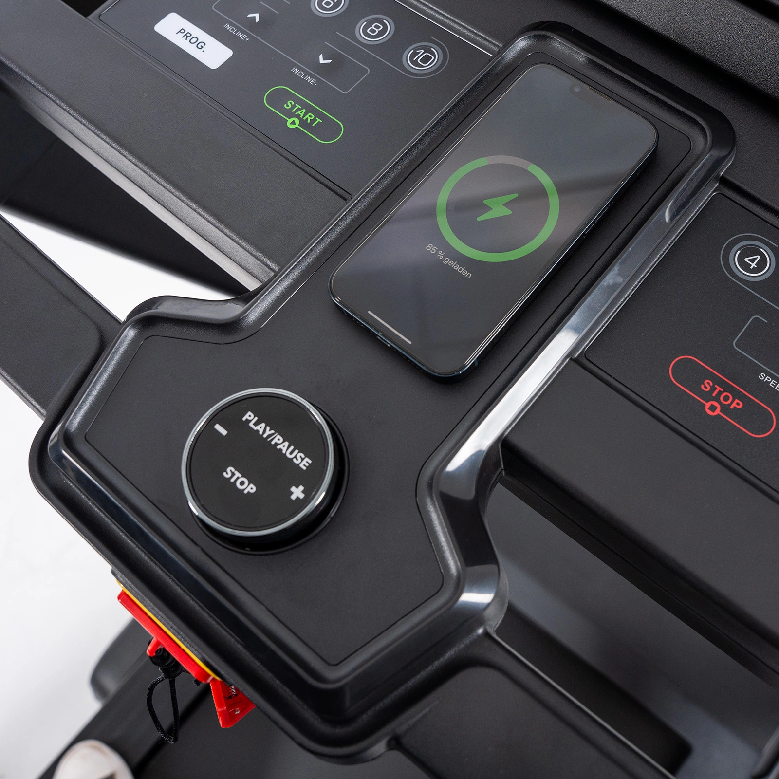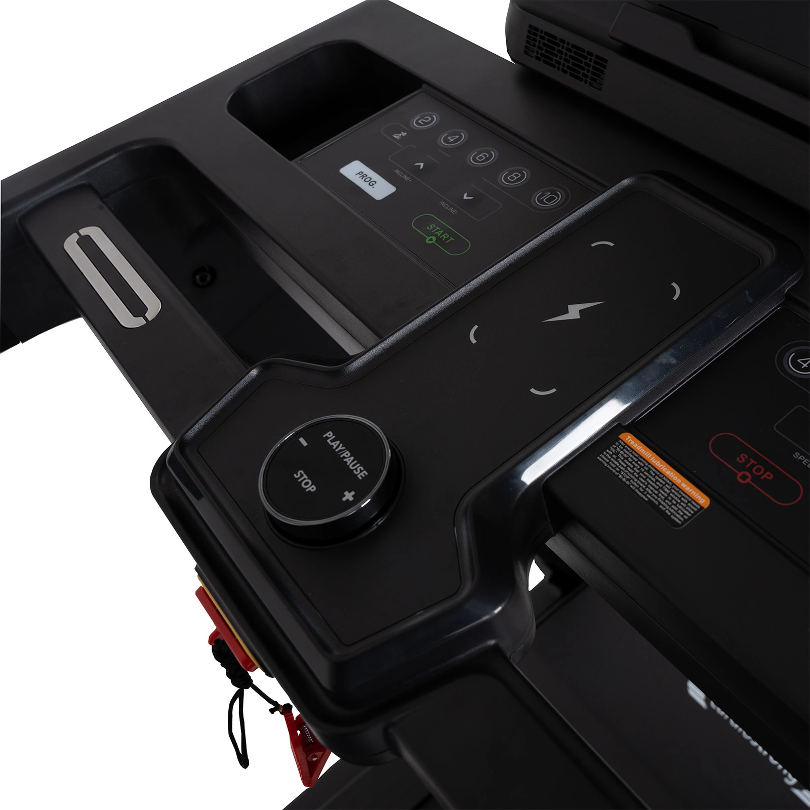 Bezpečnostní klíč s funkcí automatického zastavení, v případě pádu se běžecký pás okamžitě zastaví (díky lanku se svorkou připevněným k oděvu)