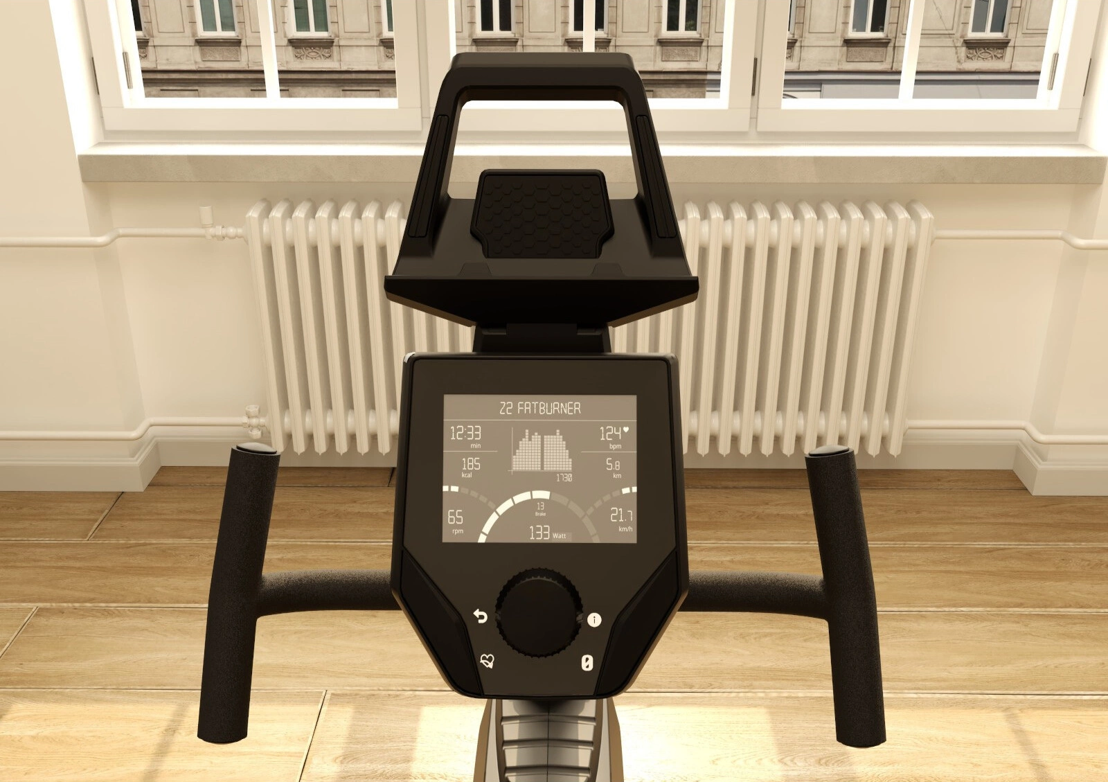 Snadno čitelné, intuitivní použití umožňuje jednoduché ovládání tréninkových parametrů. Dostupné na 10 programů, přizpůsobené různým úrovním fyzické zdatnosti pro zpestření tréninků. Ergometr lze používat ve dvou režimech: AUTO MODE (automatický trénink - nezávislý na rychlosti) a MANU MODE (manuální trénink - závislý na rychlosti). Tréninkový počítač vám také umožňuje 4 uživatele lze nakonfigurovat, aby každý člen domácnosti měl přístup k nejnovějším tréninkovým datům. Zobrazí sedm nejdůležitějších parametrů tréninku: